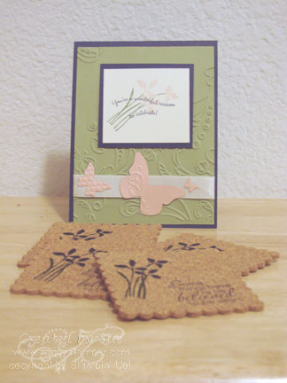 Finally, I think this is my favorite 3-D item. I made cork coasters using the Big Shot and Scallop square Bigz die. Here is the original post.