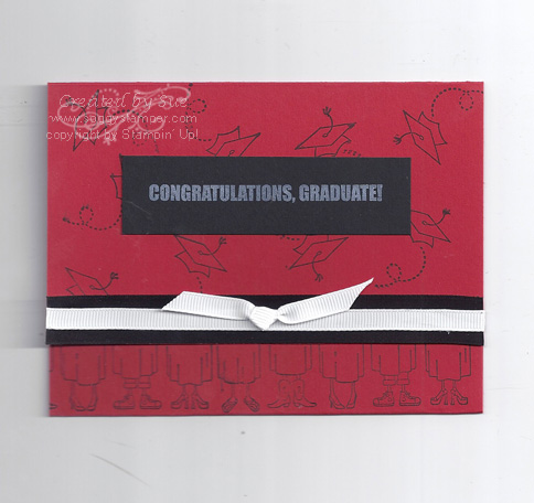 Here is another card using the Go, Graduate stamp set. This time I used it to create a money holder/card. The high school colors are red and black. Have you ordered your set yet? It is very easy. Just click here then click on 'Order Now' button. The item numbers are 118519 for the wood mount and 120054 for the clear mount set.