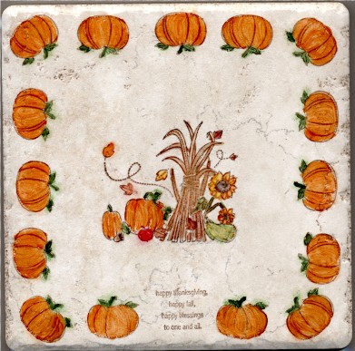 Have you tried stamping on tumbled tile flooring tiles? It is easy and they make wonderful gifts for Christmas, house-warmings, birthdays….you name it. I made this one using the Happy Blessings stamp set from Stampin' Up! I stamped the images with brown Staz-On ink which dries quickly and works on almost all surfaces. I thought it would be permanent but found that my blender pen was dissolving the stamped image. I stopped working on the tile and baked it in the oven at 150 degrees for 20 minutes. Then I let it cool and the brown Staz-On ink became permanent. Here is a picture of the trivit and directions follow.