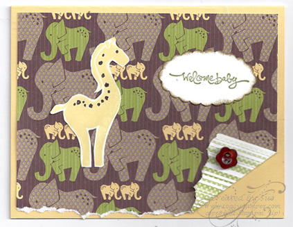 I want to welcome our 7th great-grandchild, little Emery Faith Johnson! She was born November 5th and joins two sisters, Delilah and Madison. I am sending a blanket I knitted off to the happy family and made this card to send as well. The background paper is some retired paper I have in my stash….gotta use it up sometime! The stamp set Animal Stories by Stampin' Up! is still available. I think it is perfect for baby and small children's cards. Since we live in SE Alaska where we see lots of whales, I particularly like this set and its whale. If you would like to order this stamp set or other supplies, visit my online store. It is always open and your items are shipped directly to you. Thanks for visiting today.